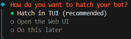✅How do you want to hatch your bot? Hatch in TUI (recommended)